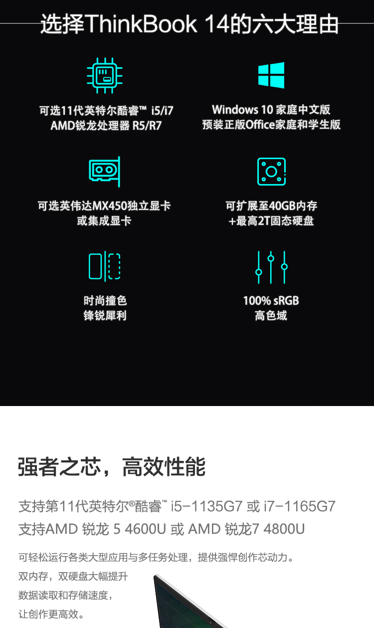 联想ThinkBook 14 2021款 14英寸轻薄笔记本电脑 【08CD】 11代酷睿i7-1165G7 独显 16G 512G 100%sRGB 高色域 标配