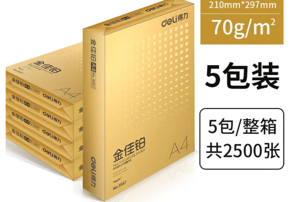 得力/deli 3557 A4复印纸 70g克500张 多功能打印纸