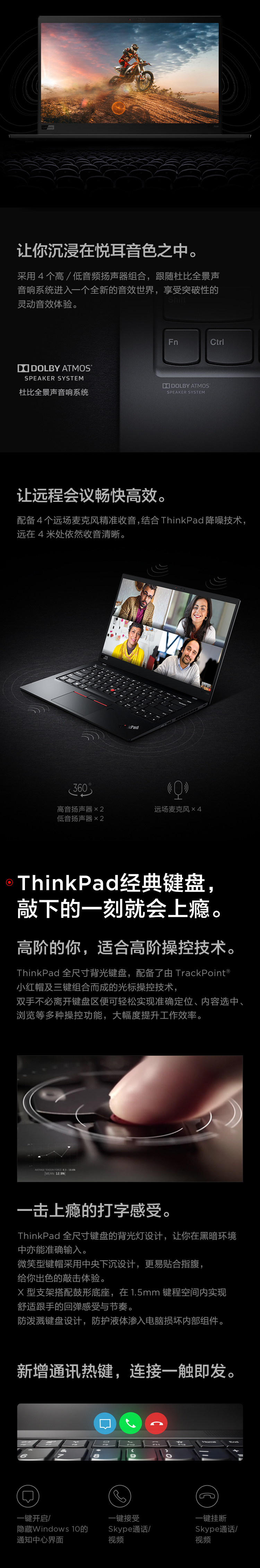 联想ThinkPad X1 Carbon 2020 7FCD 英特尔酷睿i5 14英寸轻薄笔记本电脑 十代i5 16G 512G 4G版 沉浸黑