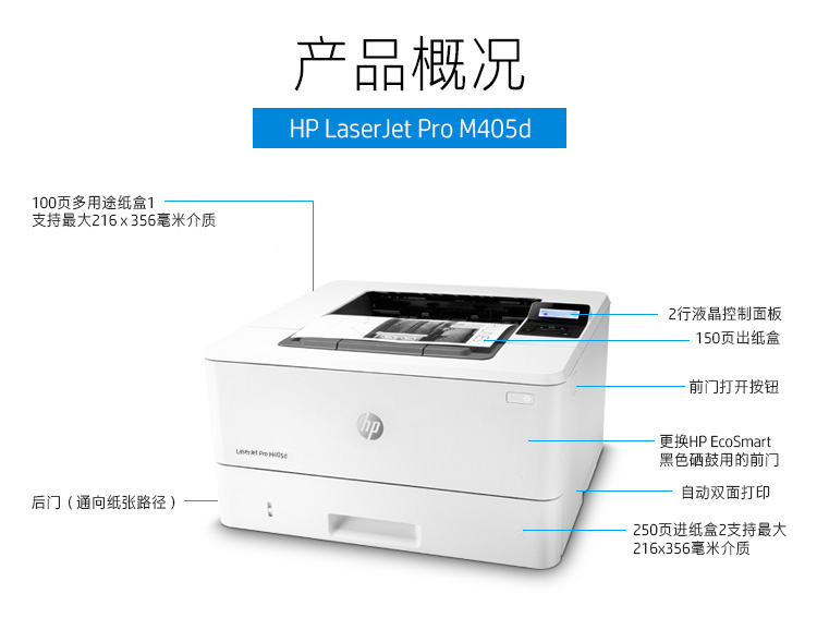 惠普(HP) M405d专业级激光打印机 液晶显示屏 自动双面打印 USB